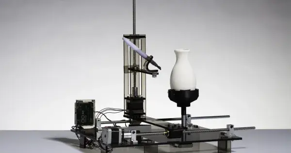 “Decidimos trabajar sobre la visión que se tiene en México sobre la artesanía. Creamos nuestro propio concepto y utilizamos un sistema de tres ejes, la máquina funciona como un torno que pinta un jarrito con una tinta de grana”, dijo Natalia.