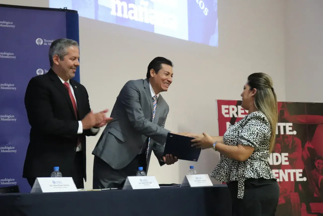 Ing. Roberto Soto Soto, director general del campus, Ing. Sulina Rivera, directora de PrepaTec e Ing. Fernando Rea director del área de Ingenierías dieron la bienvenida a estos nuevos líderes entregándoles un reconocimiento donde se distingue su gran desempeño al ganar esta beca.
