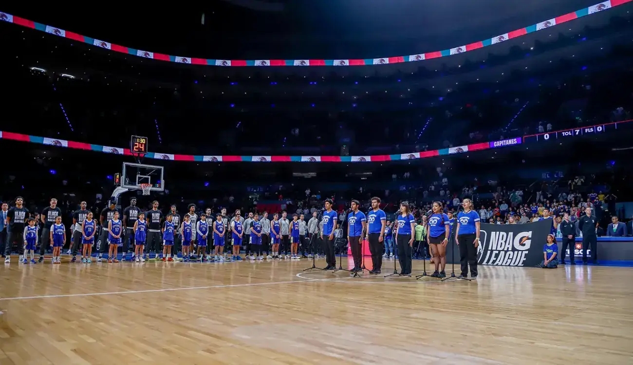 Estudiantes de las compañías artísticas de danza y canto del Tec de Monterrey campus Estado de México, presentaron el himno nacional y el show de medio tiempo del partido entre Capitanes CDMX y Austin Spurs, de la NBA G League, en la Arena Ciudad de México.
