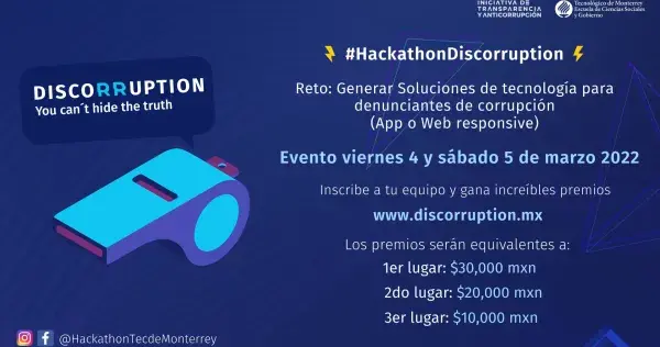 Campus Guadalajara Inicia 04 de Marzo 2022, 7:00 am Termina 05 de Marzo 2022, 9:00 pm Dirigido A Comunidad Tec Organiza Escuela de Ciencias Sociales y Gobierno event Más información chevron_right Domingo Coss Y Leon phone N/D email domingo.coss@tec.mx Tipo: Evento Etiquetas: Hackathón Categoría: Institución
