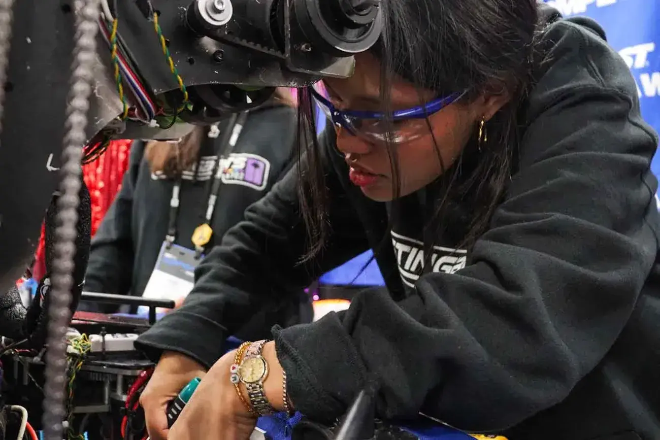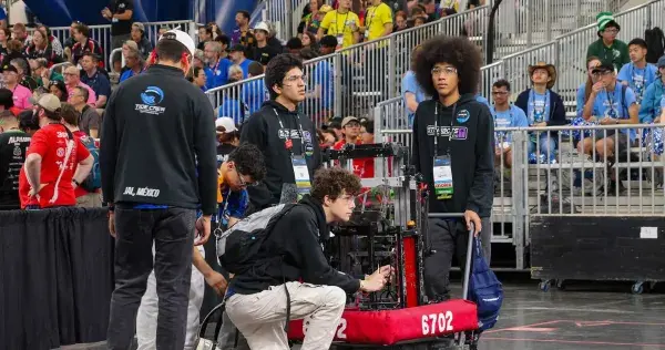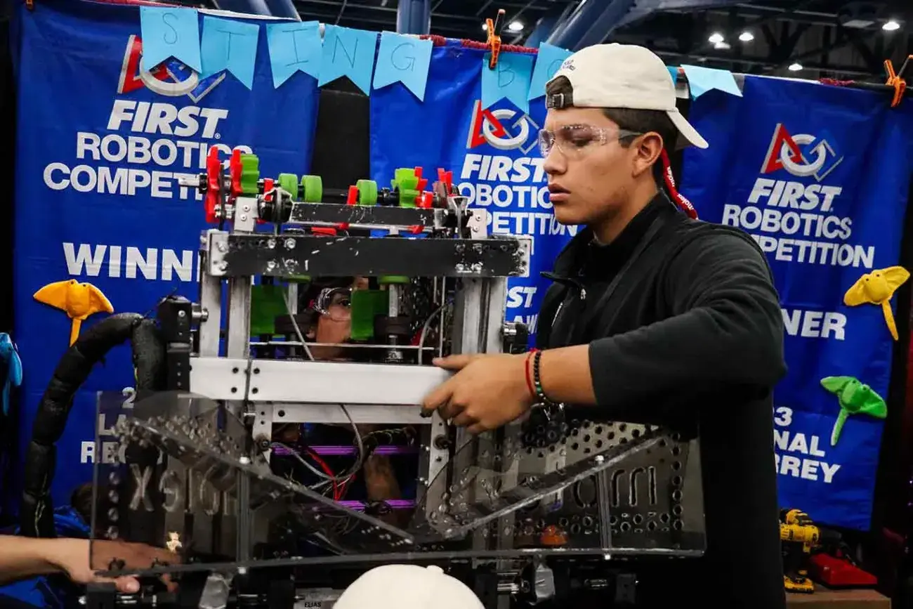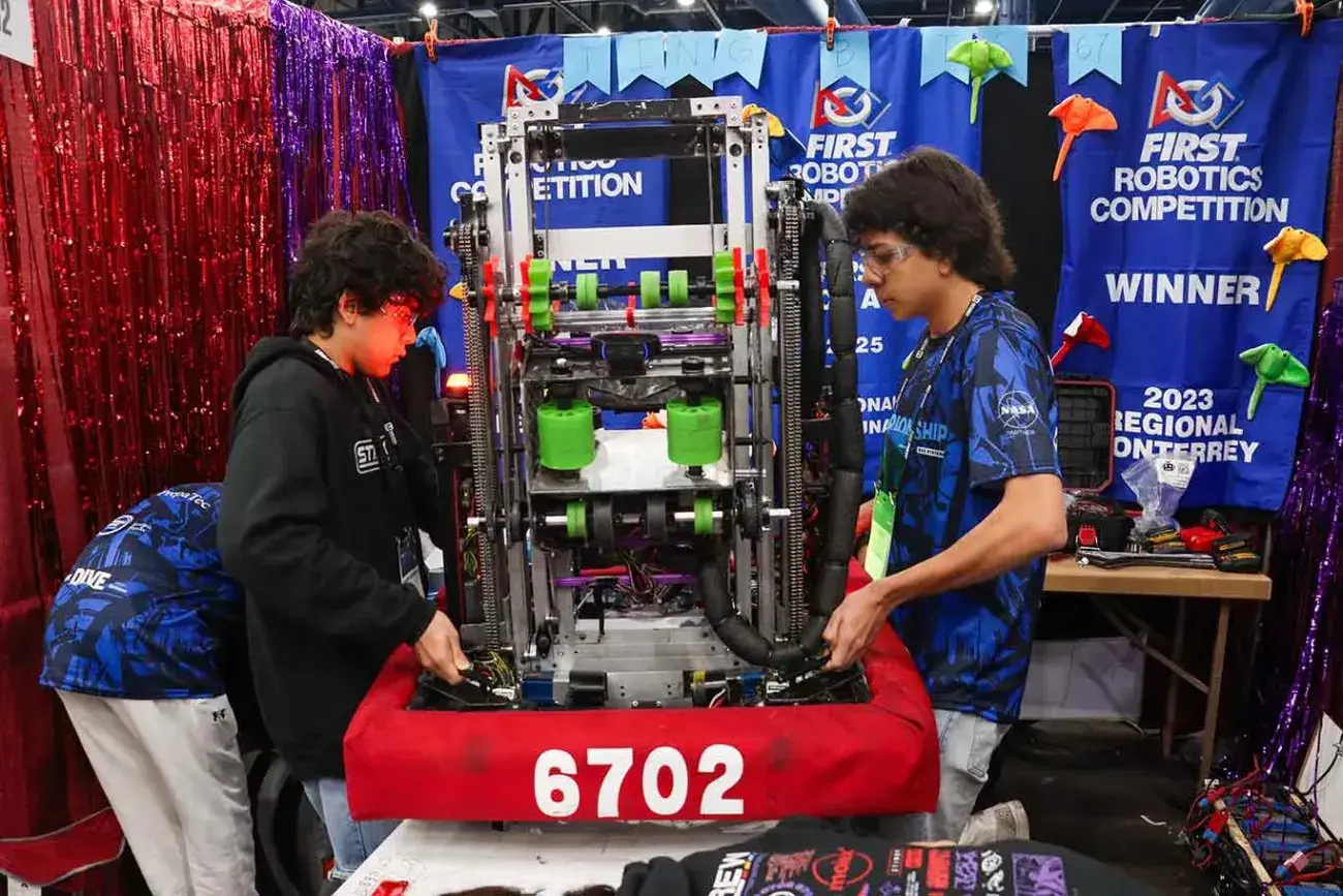 Al ganar ese premio en la fase regional del certamen, el Impact Award, el equipo StingBots 6702 obtuvo su boleto a la etapa mundial del certamen FIRST Robotics Competition 2025.