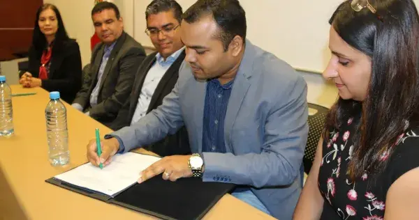 Durante la firma estuvieron presentes directivos de ambas instituciones.