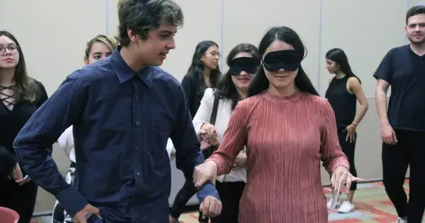 Esta cena permitió a los asistentes intentar algo nuevo: comer con los ojos vendados, guiados por los alumnos de PrepaTec Guadalajara y maestros de la Escuela Helen Keller A.C. para niños con discapacidad visual.