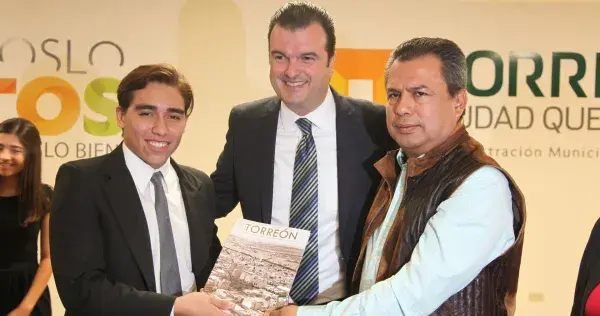 Ante la presencia del alcalde Jorge Luis Morán Delgado, integrantes del Cabildo de Torreón, directores municipales, cronistas, invitados especiales y medios de comunicación, el documento fue entregado por Eduardo Orrante del Valle, estudiante del séptimo semestre de Arquitectura (ARQ).