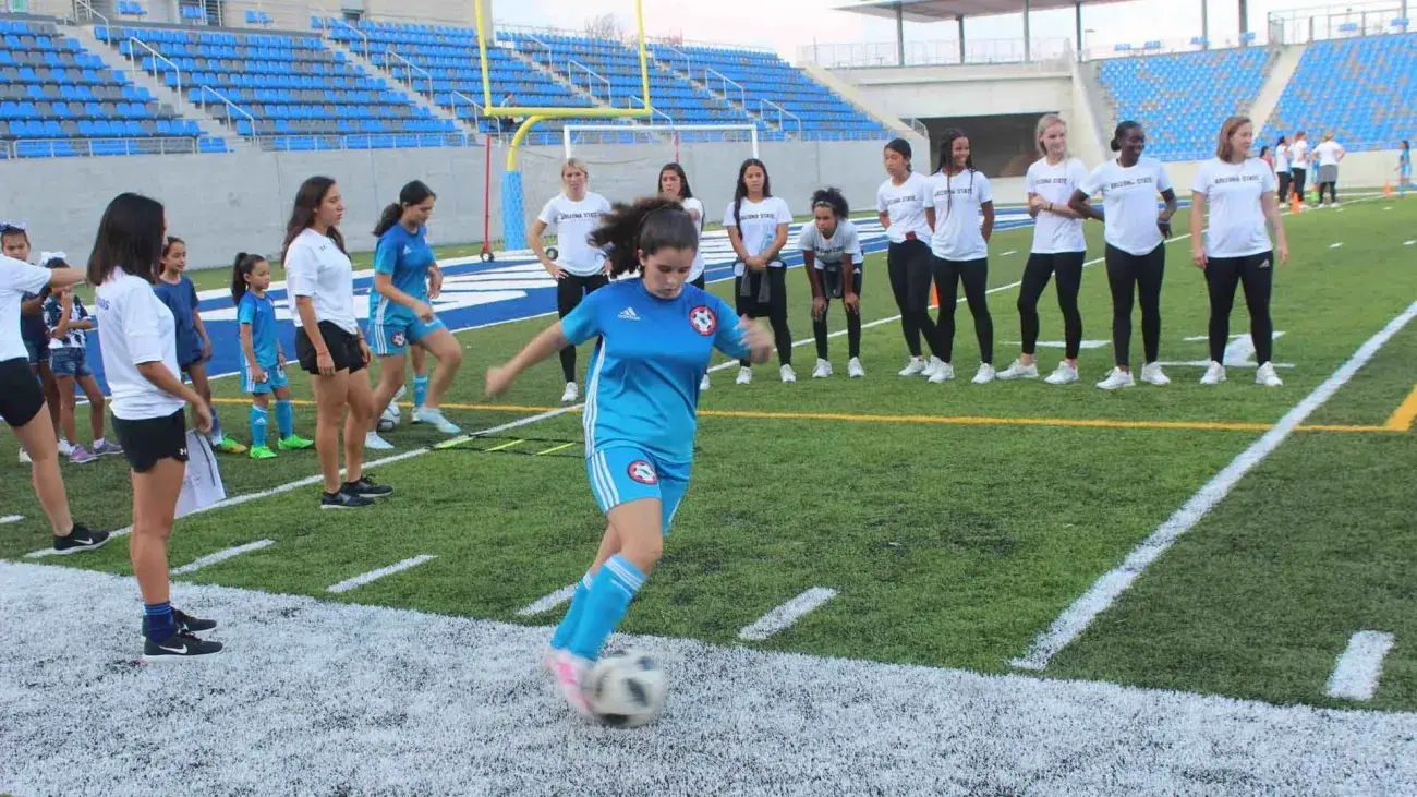 Ese mismo día, las jugadoras de la ASU realizaron también una clínica de futbol soccer con niñas del Cerro de la Campana y del área metropolitana de Monterrey.