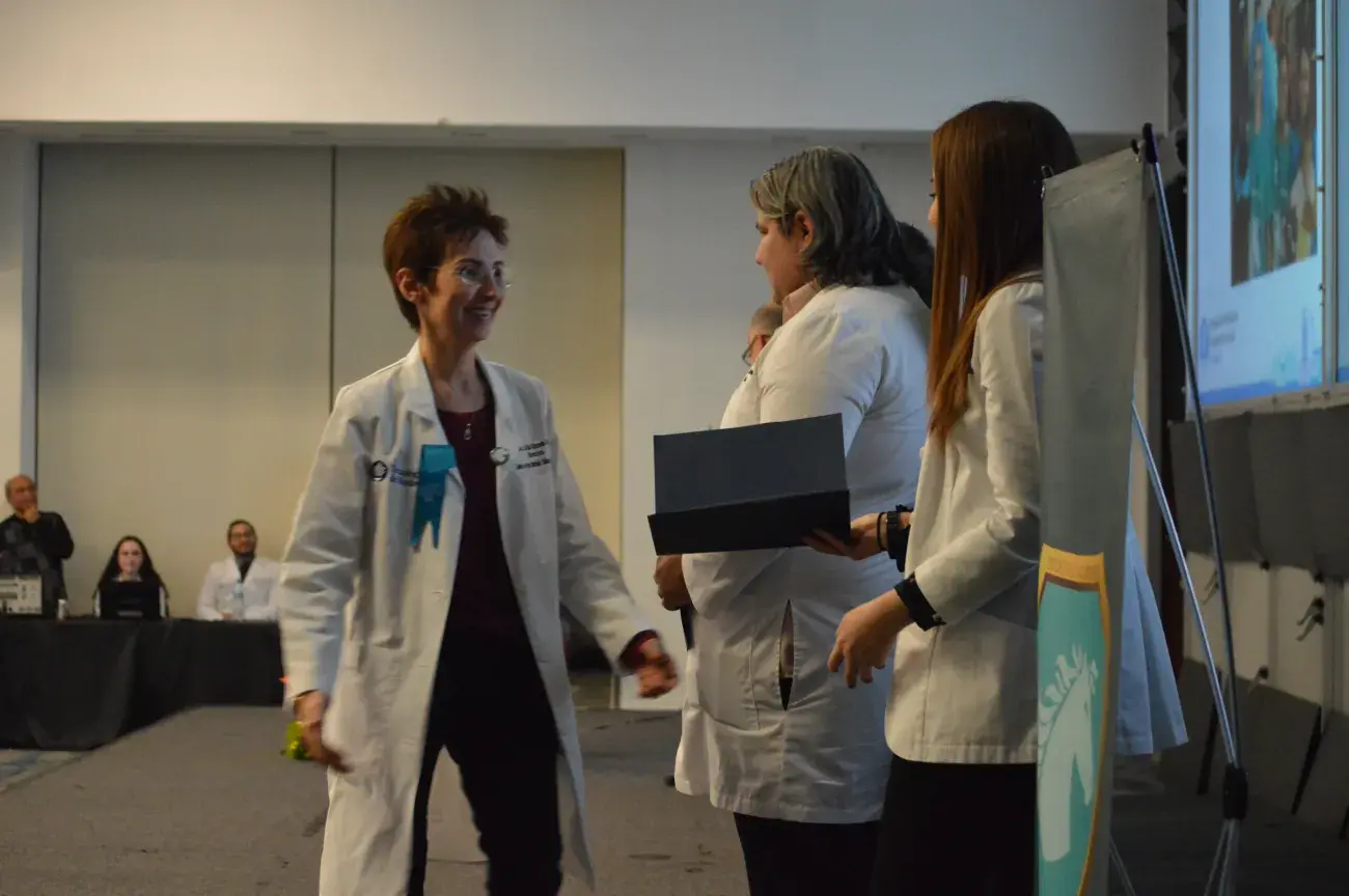 “Es experto y apasionado de su área y asume en cada momento que se le presenta, el reto de contribuir a formar el mejor alumno que tienen enfrente, y que hará la diferencia tanto en su comunidad como en el beneficio de todos los pacientes que tocará a través de sus alumnos. Con emoción debo decirles que en este marco social de actividades que hemos creado, los que más hemos ganado somos nosotros, los profesores, líderes y los coordinadores”. Mencionó la Dra. Claudia Hernández –Coordinadora Región Norte de las Sociedades Académicas de la Escuela de Medicina y Ciencias de la Salud-, quien realizó la entrega de los reconocimientos a los profesores.