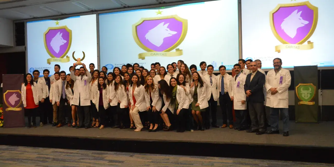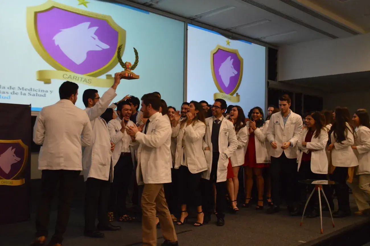 El pasado 22 de febrero se llevó a cabo la “Clausura del Tercer Desafío de Sociedades Académicas”, la cual fue la culminación de un año lleno de actividades en donde las 6 casas académicas: Cáritas, Cor, Iustitia, Sapientia, Temperantia, Trascendentia, integradas por alumnos y lideradas por profesores de la Carrera Médico Cirujano pusieron a prueba sus capacidades físicas y mentales. El momento esperado sucedió cuando se premió a la casa ganadora por su destacada puntuación en las actividades: CASA CÁRITAS, liderada por el Dr. Luis Morales.