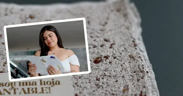 “Encontré el término 'hoja plantable’, que es una hoja que se puede plantar hecha a base de fibra de coco. Esta ayuda a germinar las semillas que vienen incrustadas. En la fase piloto fueron semillas de rábano, pero puede ser cualquier tipo.