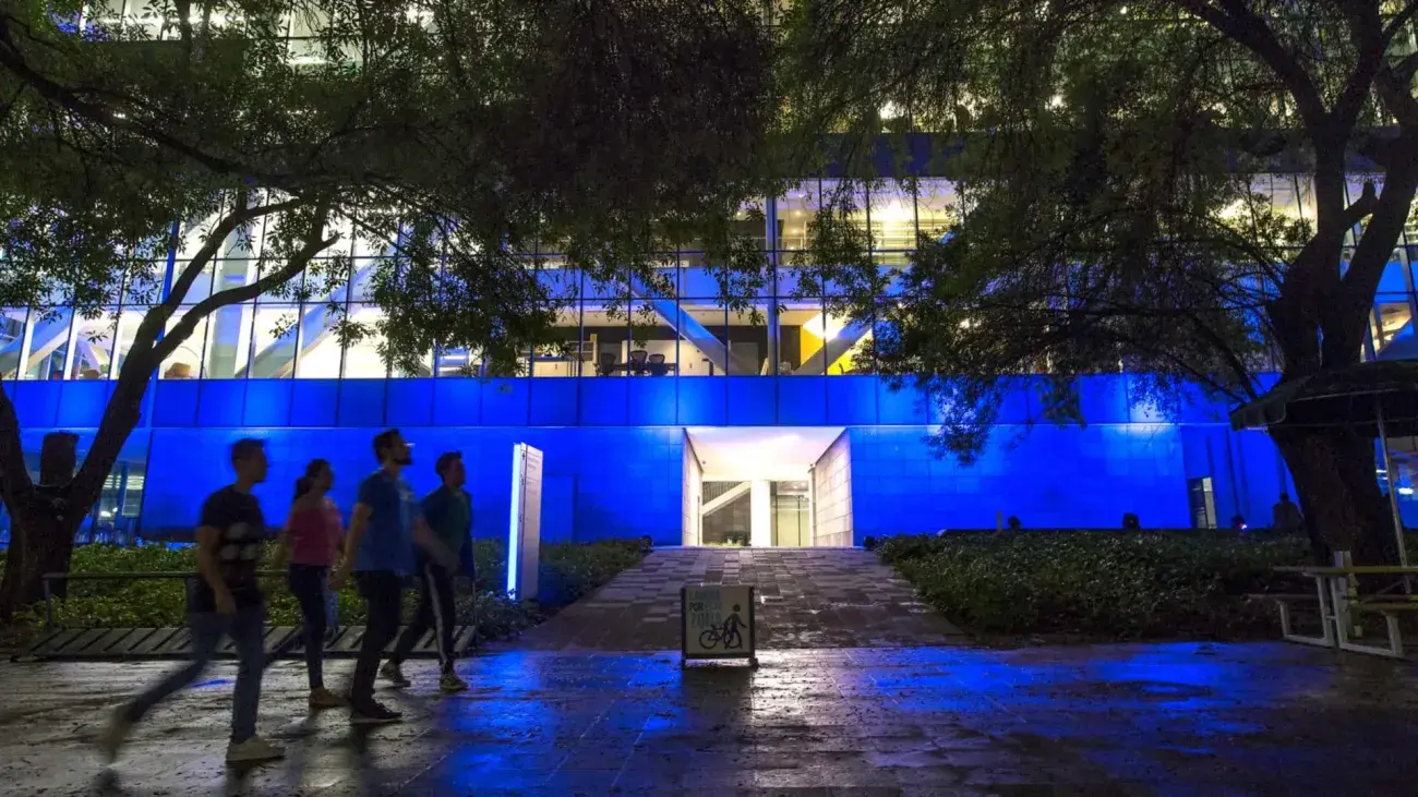 En el campus Monterrey, los edificios de Rectoría, CETEC, la BiblioTEC, Pabellón La Carreta y el Campanario fueron iluminados con el distintivo color azul.
