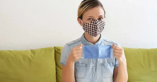 - Agrega 2 capas de material: usa un cubrebocas de tela que tenga varias capas de tela y luego otro cubrebocas desechable debajo del de tela.