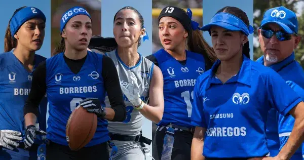 Ángela Funes, Andrea Martínez, Victoria Chávez, Diana Flores y Andrea Petrone participan en la Selección Femenil de Flag Football de México como jugadoras, mientras que Fernando Nahara lo hace como asistente de head coach.