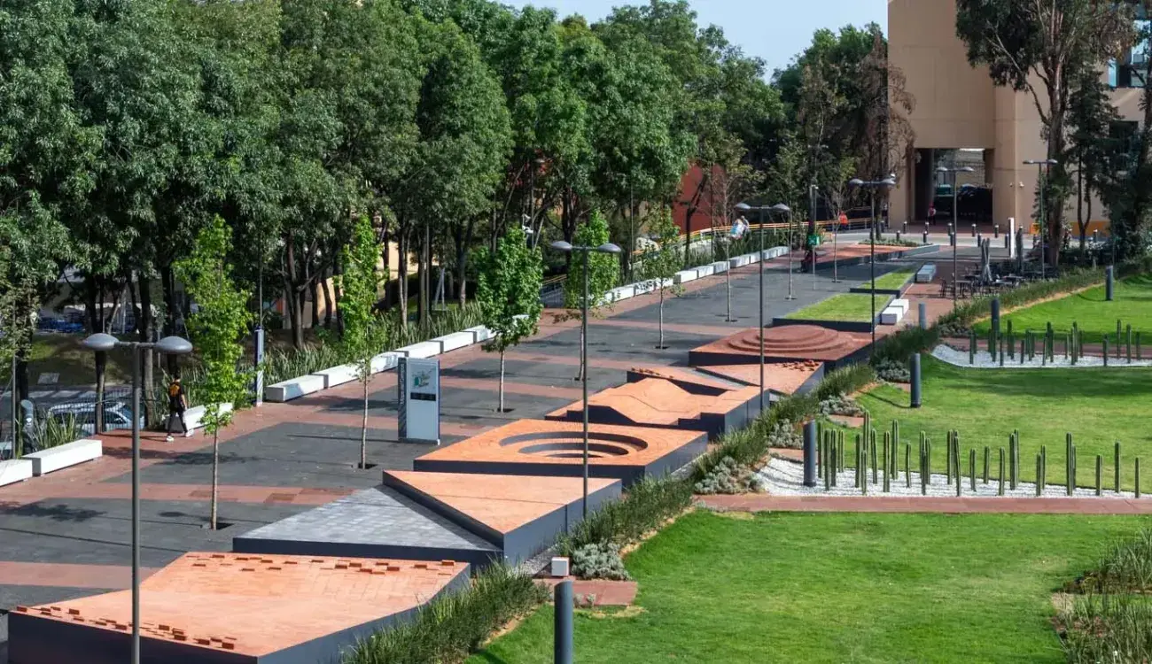 Adriana Rodríguez, directora del programa de Arquitectura del Tec campus Santa Fe, explica que La Rambla se compone de 3 elementos: