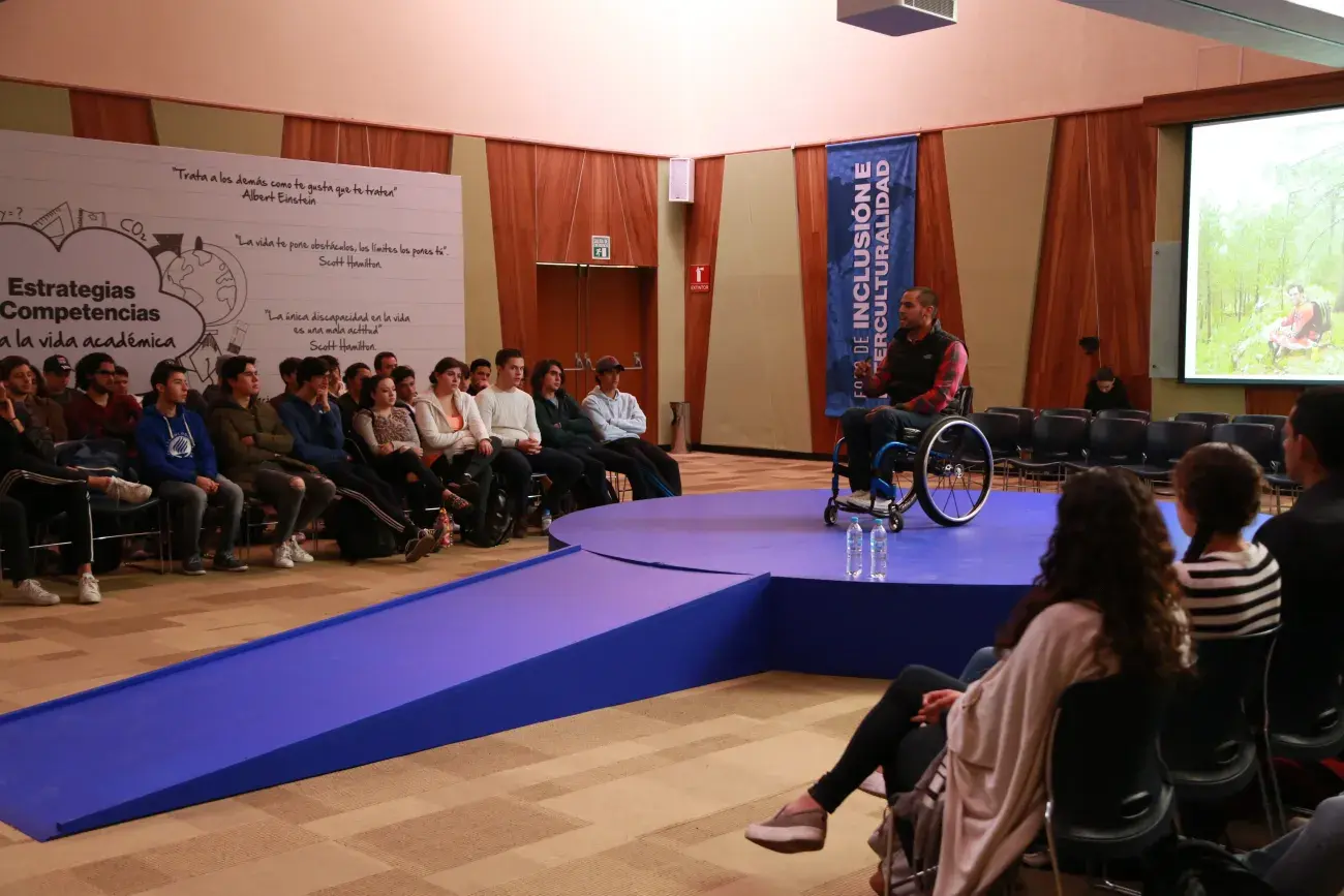 El mes de la Inclusión e Interculturalidad contó con la presencia de Daniel Gómez, joven EXATEC y conferencista quien ofreció la charla ‘La única discapacidad es la mala actitud’.