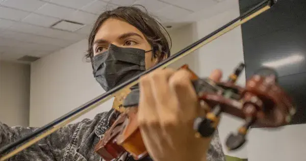 El estudiante de PrepaTec campus Sonora Norte, Sebastián Bojórquez, participó en la inauguración del Aeropuerto Internacional Felipe Ángeles como parte de la Orquesta Juvenil Sinfónica de Sonora (OJUSSON).